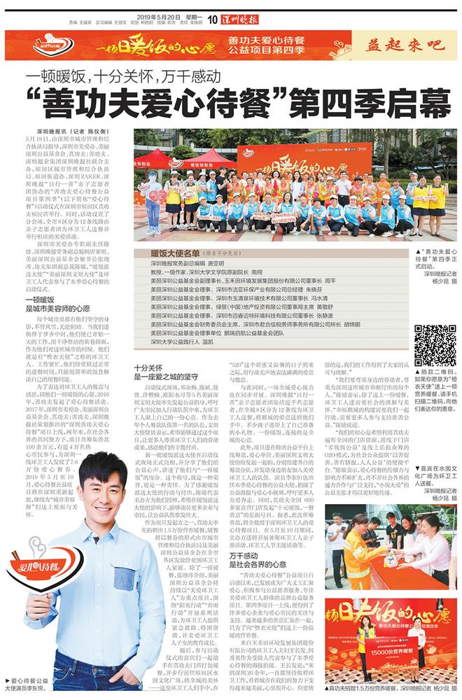 5月20日,《深圳晚报》等媒体对此次爱心待餐活动进行了详细的报道,对IM电竞环保公司和朱总的公益事迹给予了充分的肯定。